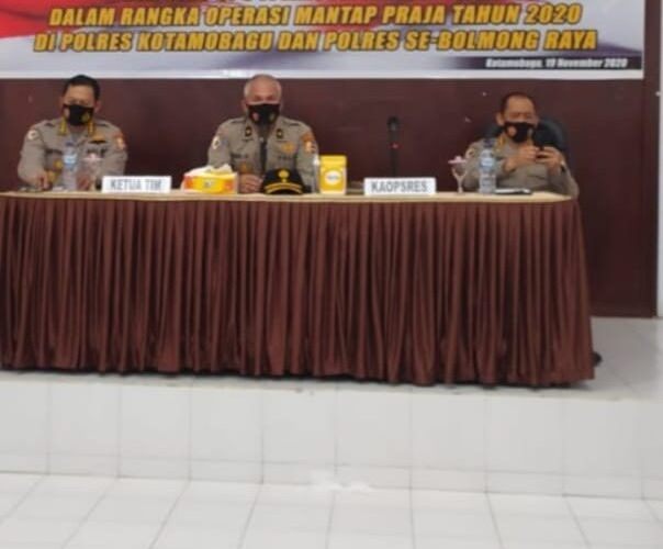 “kami jajaran Kapolres Se Bolaang Mongondow Raya menyampaikan selamat datang Kepada Tim Was Ops Mantap Praja 2020 Mabes Polri,” Ucap Kapolres Kotamobagu.