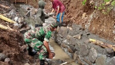 Kemanunggalan TNI Rakyat, Babinsa Gotong Royong Buat Talud