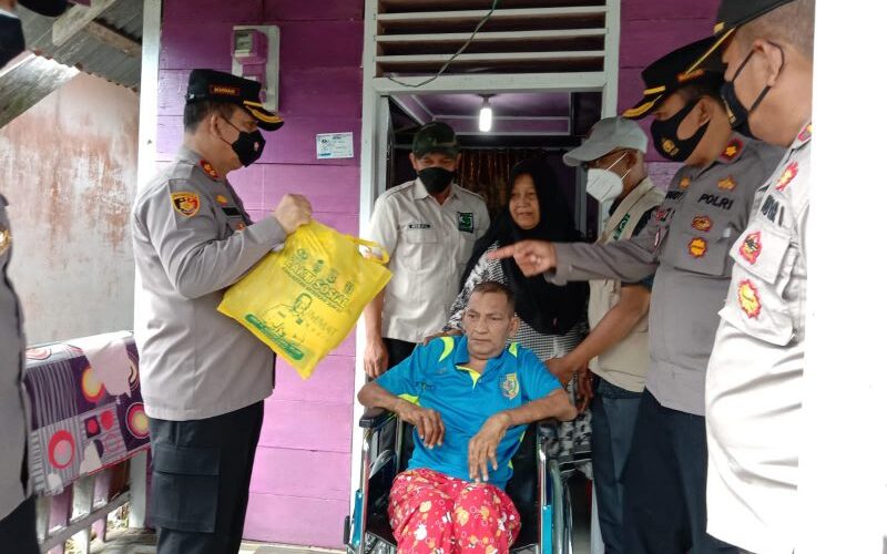 Polres juga memberi bantuan kursi roda kepada saudara Roy yang mengalami kelumpuhan total selama 3 tahun lama nya, berdiam diri sampai 3 tahun sekarang dia tidak bisa berbuat apa apa kepada keluarga nya.