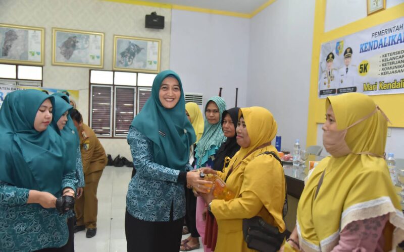 Salah satu lokasi pasar murah berada di Aula Kantor Camat Air Putih, Selasa (11/10/2022). Pasar murah ini terselenggara melalui Dinas Ketenagakerjaan Perindustrian dan Perdagangan Kabupaten Batu Bara. Pasar murah kali ini ditinjau oleh Ketua Tim Penggerak Pemberdayaan Kesejahteraan Keluarga (TP PKK) Kabupaten Batu Bara Ny. Hj. Maya Indriasari Zahir, SE.