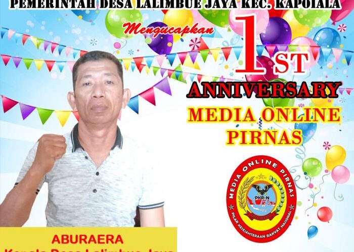 “Saya atas nama pribadi dan atas nama Pemerintah Desa Lalimbue Jaya mengucapkan, Selamat HUT ke-1 Media PIRNAS, Semoga Media Pirnas akan tetap menjadi media yang selalu menyampaikan informasi yang akurat, tajam dan terpercaya. Saya juga mengucapkan selamat Dirgahayu RI ke-75, Semoga negara kita ini akan lebih maju dan berkembang dan rakyatnya akan lebih sejahtera,” ucap Kades.