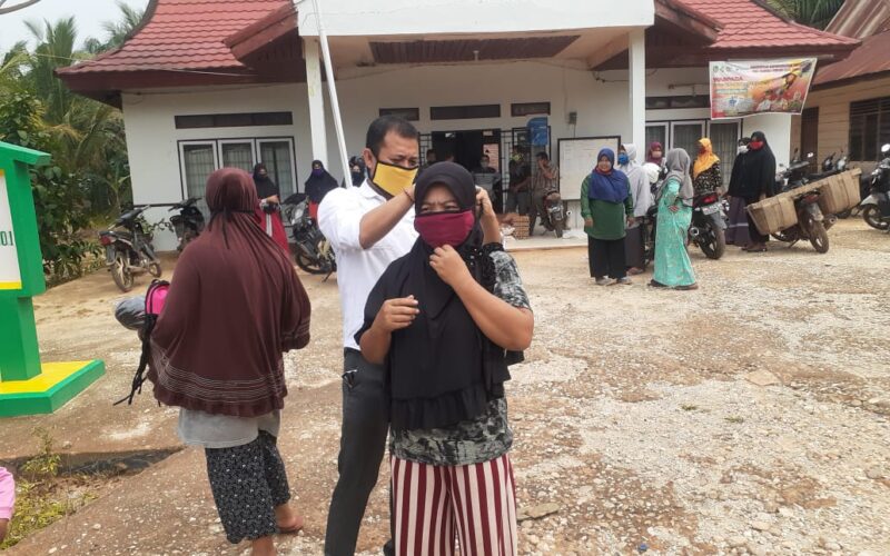 ROKAN HILIR | PIRNAS.COM – Dalam menghadapi pandemi covid 19, Kepala Desa Teluk Bano, Kecamatan Bangko Pusako bersama Bhabinkamtimas dan Babinsa membagikan sembako kepada warganya, Kamis (20/4/2020).