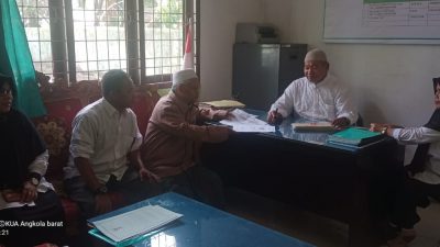 PIRNAS.COM | TAPSEL  – Kepala Kantor Urusan Agama (KUA) Kecamatan Angkola Barat, Kabupaten Tapanuli Selatan, H. Asral Simatupang, S.Ag. memimpin rapat tekhnis penerimaan peserta Musabaqoh Tilawatil Qur’an (MTQ) ke 54 tahun 2022 tingkat Kecamatan Angkola Barat, Kabupaten Tapanuli Selatan, bersama tim Penyuluh Agama Islam (PAI) di Kantor KUA Angkola Barat baru-baru ini.