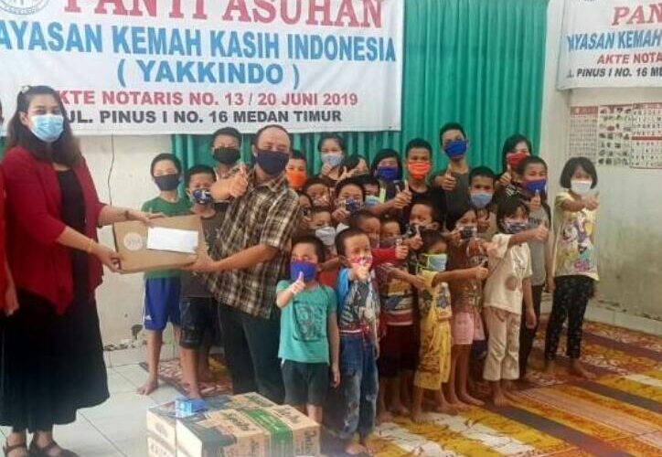 PIRNAS.COM | MEDAN- Bakal Calon (Balon) Wakil Wali Kota Medan dari Partai Gerindra Suryani Paskah Naiborhu menyumbangkan 1 unit laptop dan bahan pokok (bapok) berupa beras, mie instan serta sejumlah uang kepada Panti Asuhan Kemah Kasih Indonesia, Selasa (16/6).