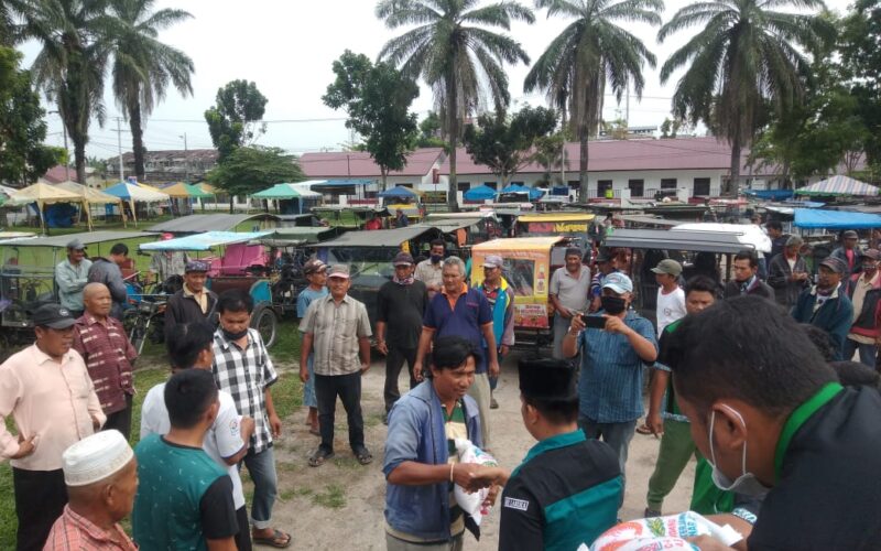 Ketua DPD JBMI Labura Bagikan Beras Kepada Para Tukang Becak Selama Lock Down