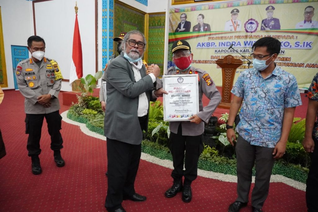 PIRNAS.COM | PELALAWAN – Ketua Umum Komnas Perlindungan Anak Indonesia berikan penghargaan kepada Kapolres Pelalawan AKBP Indra Wijatmiko, S.IK beserta jajarannya dan menandatangani Komitmen Implementasi UU Perlindungan Anak di Kabupaten Pelalawan. Jumat (16/10/2020) bertempat di Gedung Daerah Datuk Laksmana Mangkudiraja.