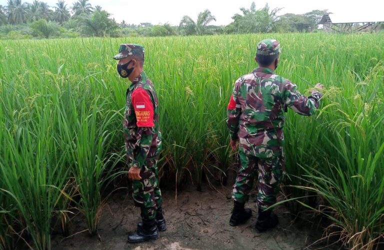 PIRNAS.COM | ROHIL – Koramil 04/Kubu melalui Babinsa Serma Sriyono dan Serda Rusli pada Selasa (12/01) melakukan pengecekan tanaman padi milik petani di Kepenghuluan Teluk Puyai Kecamatan Kubu Rokan Hilir Riau.