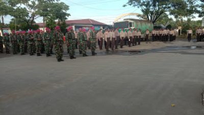 Prajurit Petarung Batalyon Marinir Pertahanan Pangkalan (Yonmarhanlan) I Belawan dipimpin Pjs Pasipers, Lettu Marinir Imran bersama Wakapolres Pelabuhan Belawan Kompol Herwansyah Putra, SH, M.Si.