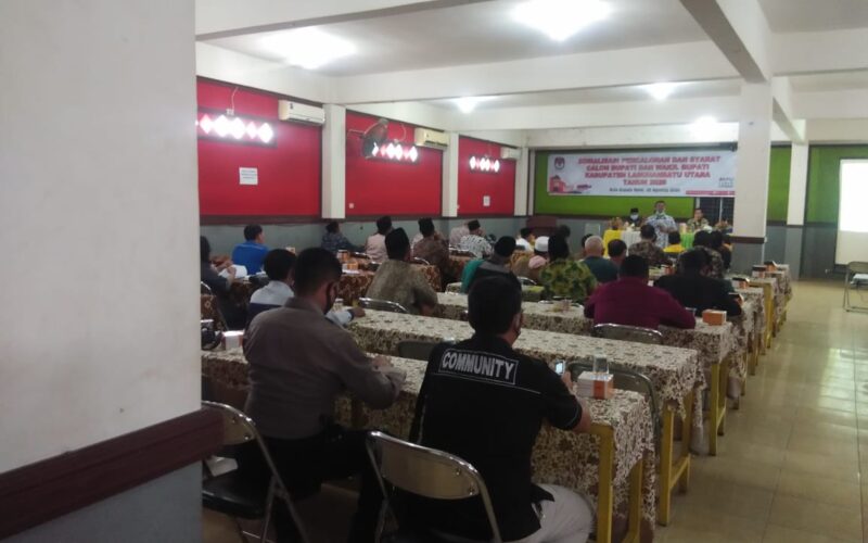 PIRNAS.COM | LABURA – Komisi Pemilihan Umum (KPU) Kabupaten Labura melaksanakan Sosialisasi Pencalonan Syarat Calon Cabup dan Wabup Kabupaten Labura Tahun 2020 pada hari Selasa (25/8/2020), di Aula Grads Hotel Labura Aek Kanopan.