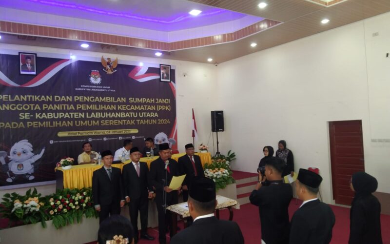 PIRNAS.COM | LABURA – Hari ini Ketua KPU Kabupaten Labuhanbatu Utara (Labura) melaksanakan pelantikan terhadap Anggota Panitia Pemilihan Kecamatan (PPK) Se- Kabupaten Labuhanbatu Utara pada Pemilu tahun 2024. Acara pelantikan itu dilaksanakan di Aula Hotel Permata Warna Aek Kanopan pada hari Rabu ( 4/12/2022).