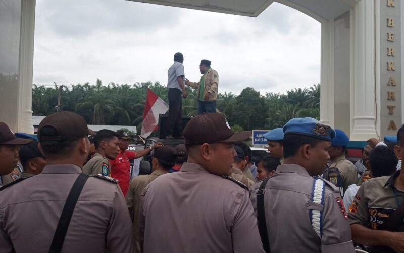 Aksi kecewa atas tindakan Sekda Labusel Zulkifli yang tak berani keluar dari kantornya .