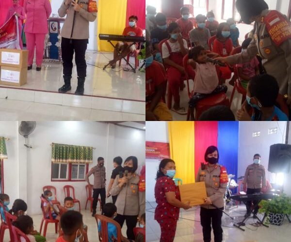 Kunjungi Panti Asuhan, Kapolres Bolmong Bernyanyi Bersama Anak-Anak Panti Asuhan, Dalam Rangkaian HUT Bhayangkara