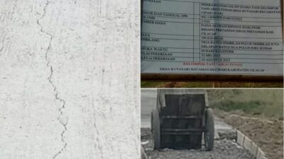 PIRNAS.COM | Cilacap – Pemerintah Daerah bekerjasama dengan Pemerintah pusat, mendorong meningkatkan impra struktur pertanian. Dengan cara membagun jalan rabat beton ditengah sawah. Tentunya bertujuan sangat baik, guna mempermudah petani dalam mengangkut hasil panen.