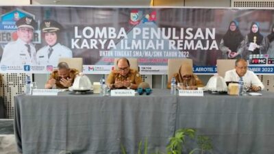 PIRNAS.COM | Makasar – Dinas Perpustakaan Kota Makassar Meyelenggarakan LOMBA PENULISAN KARYA ILMIAH REMAJA TINGKAT SMA/MA/SMK SE-KOTA MAKASSAR TAHUN 2022. dengan tema “Generasi Milenial Anti Narkoba”.Di hotel Aerotel Smile Makassar, Jl. Muctar Lutfi No.30 Makassar. Senin(12/12/22).