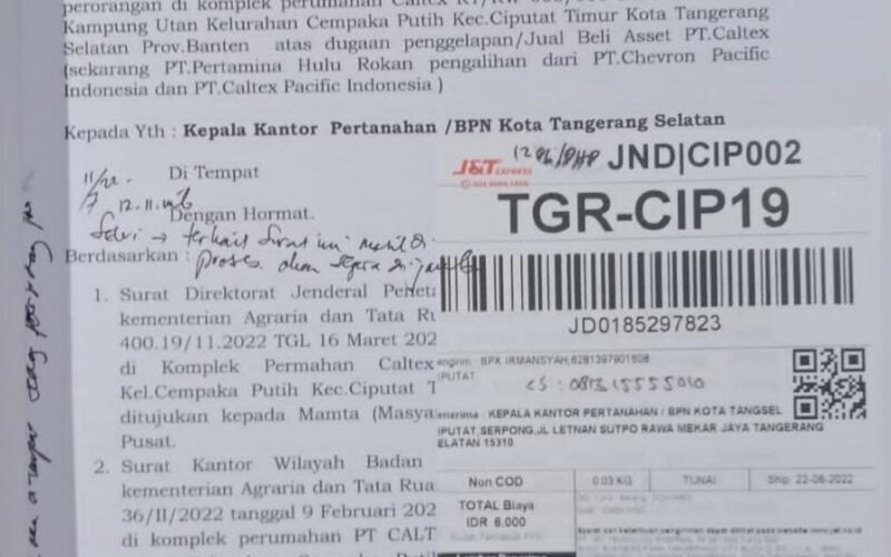 PIRNAS.COM | TANGERANG – Dikutip dari Pernyataan Irmansyah, SE. selaku Direktur Eksekutiv Masyarakat Peduli Agraria (Maspera) kepada Media ini, yang menyatakan meminta kepada pihak Menteri ATR /BPN RI dan Kanwil ATR/ BPN Banten dan juga terhadap Kepala Kantor ATR BPN Kota Tengerang Selatan, agar tidak menerbitkan surat kepemilikan di lokasi tanah perumahan PT. Caltex tepatnya di Kecamatan Ciputat Timur, Kelurahan Cempaka Putih. Pernyataan itu dibuatnya pada hari senin (11/7/2022) melalui pesan singkat Via Whatsapp-Nya.