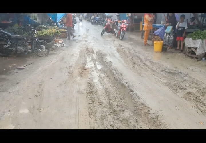 Tegas ungkapan pedagang yang sedang berjualan pada pagi hari mekarakan nya untuk apala tanah putih ini disiramkan dijalan yang rusak.bukan menambah bagus nya pemandangan mahn jadi runyam para kendaraan yang melintasi jalan tersebut.pagi ini aja ada beberapa kareta yang jatuh dan terguling diakibatkan Jan yang disiram tanah putih itu licin.