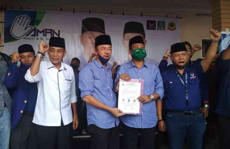 Paslon AMAN dan deklarasi pernyataan dukungan Tiga Partai. Bukan hanya itu mantan ketua DPRD dua periode yang juga merupakan kader Golkar yakni Nasrudin Hasan turut hadir dalam deklarasi itu dan berpidato menyampaikan dukungan kepada palson AMAN.