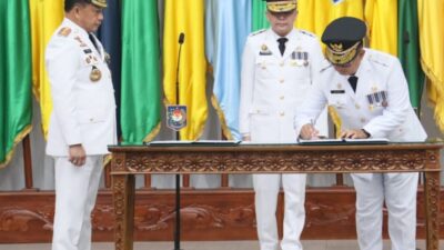 PIRNAS.COM | Jakarta – Menteri Dalam Negeri (Mendagri) Muhammad Tito Karnavian resmi melantik Agus Fatoni sebagai Penjabat (Pj.) Gubernur Sumatera Selatan (Sumsel) dan Akmal Malik sebagai Pj. Gubernur Kalimantan Timur (Kaltim). Pelantikan tersebut berdasarkan Keputusan Presiden RI Nomor 87/P Tahun 2023 tentang Pengangkatan Penjabat Gubernur. Prosesi itu berlangsung di Gedung Sasana Bhakti Praja (SBP) Kantor Pusat Kementerian Dalam Negeri (Kemendagri), Senin (2/10/2023).