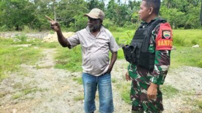 PIRNAS.COM | Keerom – Satgas Pamtas Yonif 132/Bima Sakti Melaksanakan kegiatan Anjangsana di Kampung Telaga, Distrik Muara Tami, Kab.Keerom, Provinsi Papua, Selasa (07/03/2023).
