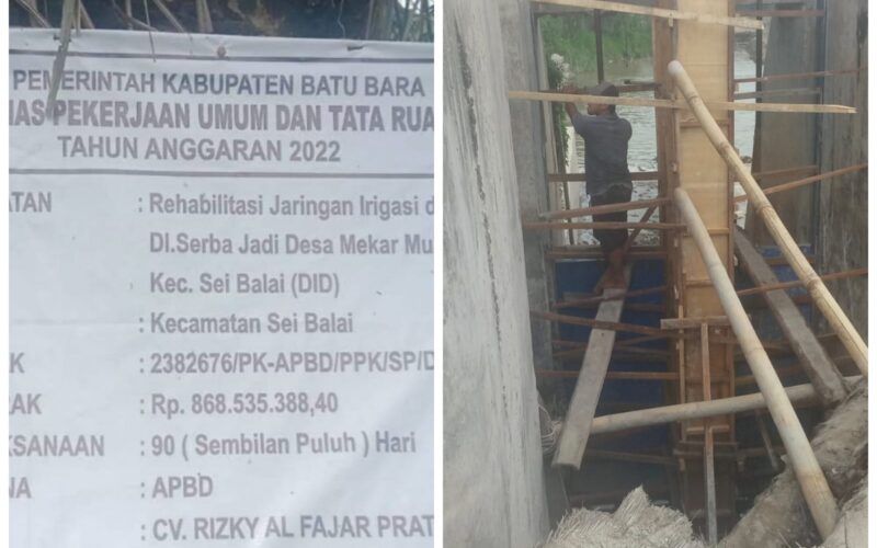 PIRNAS.COM | Batu bara – Rehabilitasi Bendungan DI Serba Jadi Di Kecamatan Sei Balai berujung Jadi Sorotan, Pasalnya Kegiatan Pekerjaan Tersebut Hingga Sekarang Masih terus di Kerjakan dan terus dikebut pekerjaan nya hingga kini,Timbul Pertanyaan Kenapa Masih di Kerjakan?