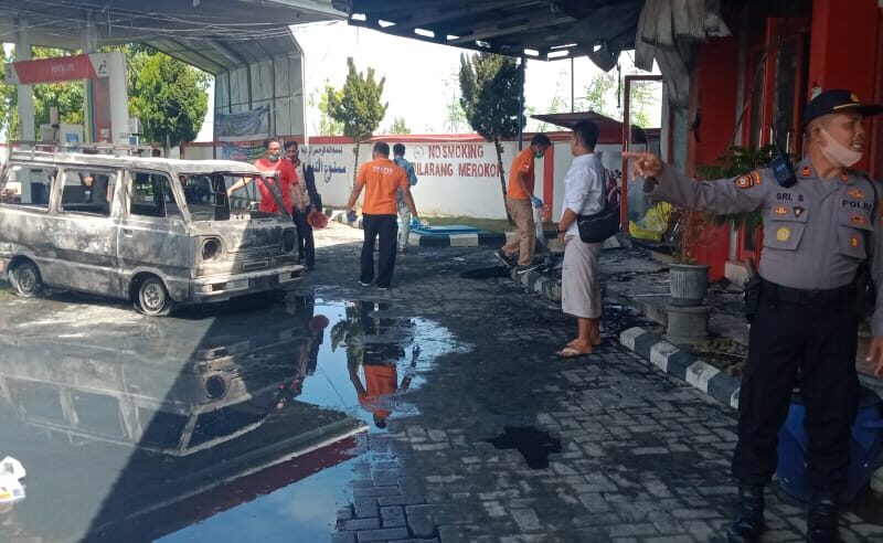 Kapolsek Palengaan Iptu Sri Sugiarto menyampaikan, “bahwa mobil tersebut sedang melakukan pengisian, dan bensinnya tumpah karena melebihi muatan sehingga api keluar dari bawah mobil dan terbakar.”