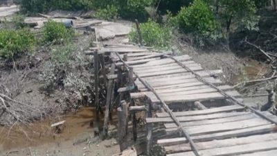 “Titi yang terbuat dari kayu laut dan papan tersebut sudah lapuk dan tiang penyangga titi tersebut juga sudah tidak kuat, dan nyaris roboh”, kata Ilham salah seorang warga kepada wartawan, Jumat (29/5/2020).