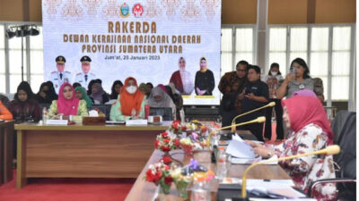 PIRNAS.COM | BATU BARA – Ketua Dewan Kerajinan Nasional Daerah Dekranasda Kabupaten Batu Bara Ny. Hj. Maya Indriasari Zahir mengikuti rapat kerja daerah (Rakerda) Dekranasda Provinsi Sumatera Utara tahun 2023 yang digelar di Aula Tengku Rizal Nurdin, Rumah Dinas Gubernur Sumut, Jalan Jenderal Sudirman No. 41 Medan,
