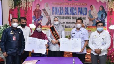 PIRNAS.COM | BATU BARA – Untuk membantu mewujudkan program-program Bunda PAUD Kecamatan. Bunda PAUD dan Ketua Pokja Bunda PAUD Kabupaten Batu Bara melakukan pengukuhan Pengurus Pokja Bunda PAUD Kecamatan secara bergantian.Dalam kesempatan ini, Bunda PAUD Kabupaten Batu Bara Ny. Maya Indriasari Zahir mengajak Kepala Dinas Pendudukan dan Pencatatan Sipil Maeda Soetopo, S.STP, M.SP, untuk terus mendampingi selama pengukuhan.