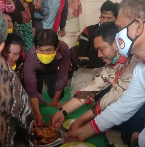 PIRNAS.COM | PAKPAK BHARAT – Sejumlah pendukung dan simpatisan warga Desa Cikaok Kecamatan Sitellutali Urang Julu menyambut kehadiran agenda kampanye paslon nomor urut satu (1) FBT-MO dengan penyuguhan sebuah makanan adat tradisional suku Pakpak yakni “Panganen merrorohken manuk tuk” jamuan tersebut merupakan salah satu tradisi adat Pakpak dalam penyambutan atau pemberangkatan dalam sebuah keluarga dekat, sanak famili dan handai tolan untuk menuju harapan suatu keberhasilan dalam mencapai suatu Cita-cita yang mulia.