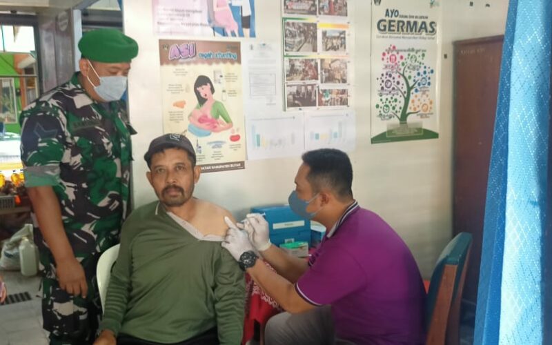 Home » Daerah » Pastikan Berjalan Lancar, Babinsa Koramil Wlingi Dampingi Kegiatan Vaksinasi Warga Binaannya