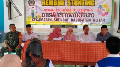 PIRNAS.COM | Blitar – Babinsa Koramil 0808/06 Srengat Kodim 0808/Blitar Sertu Puji Suharto, menghadiri musyawarah kegiatan rembuk stunting di wilayah binaannya, bertempat di Balai Desa Purwokerto Kec. Srengat Kab. Blitar, Rabu (26/7/2023).