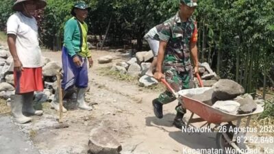 PIRNAS.COM | Blitar – Sebagai wujud kepedulian terhadap pembangunan di wilayah binaan, Babinsa Koramil 0808/22 Wonodadi Kodim 0808/Blitar Serda Cucuk Hernawan dan warga masyarakat, melaksanakan kegiatan kerja bakti dan gotong royong bersama.