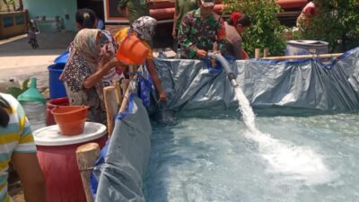 Untuk mengatasi permasalahan tersebut, Babinsa Koramil 17/Wonosegoro Kodim 0724/Boyolali Sertu Budi Catur Hermawan membantu penyaluran dua tangki ukuran 5000 liter air bersih untuk kebutuhan warga yang mengalami kekeringan, di Desa Garangan Kecamatan Wonosamudro Kabupaten Boyolali, (22/10/2023)