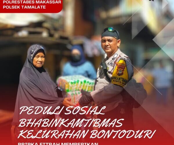 Kali ini sebagai bentuk kepedulian Polsek Tamalate Polrestabes Makassar kepada warga kurang mampu, dilakukan oleh Bripka Fitrah yang memberikan sedikit bantuan sembako jenis mie instan kepada seorang Perempuan Fatimah Dg.Uju yang berumur 63 Tahun berdomisili di Kelurahan Bontoduri.