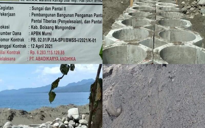 PIRNAS.COM | BOLMONG – Pekerjaan pembangunan pengaman Pantai Poigar pantai Tiberias dan pantai Nonapan Bolaang Mongondow, yang di biayai oleh keuangan Negara melalui APBN murni, di kerjakan banyak keganjalan serta mutu pekerjaanya mengecewakan warga Masyarakat, pekerjaanya dikerjakan oleh PT. Abadikarya Andhika.
