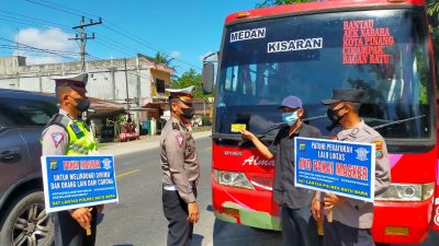 Hal senada disampaikan Kasat Lantas yang menyampaikan “Pemeriksaan dilakukan terhadap Kenderaan yg masuk ke Wilayah Hukum Polres Batu Bara khususnya Kenderaan yang dari Luar Provinsi Sumut. Dengan memberikan edukasi bagi Pengemudi dan Pengguna Jalan agar tetap Disiplin dalam Penerapan Protokol Kesehatan guna memutus mata Rantai Penyebaran Covid 19 serta memberikan teguran bagi Pengemudi yg melakukan pelanggaran Lalu Lintas dengan mengedepankan Preventif dan Preemtif guna terciptanya Sitkamseltibcarlantas serta kami juga membagikan masker dan memasang Stiker “Ayo Pakai Masker” pada kendaraan bagi masyarakat pengguna jalan tersebut” ujar Kasat.