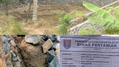 PIRNAS.COM | Cilacap – Pembagunan Embung Desa Cisalak Kecamatan Cimanggu yang dikerjakan oleh CV.TAP dengan Nilai Kontrak sebesar Rp.179.058.000 suguh luar biasa yang mana pembangunan ini tidak mengunakan pondasi. Atau memang mengunakan gaya kontruksi baru.