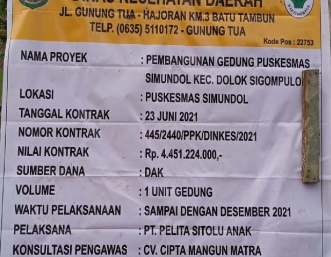 Pembangunan Gedung Puskesmas Simundol di Duga Tidak Sesuai Aturan DAK 2021