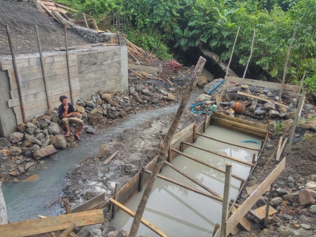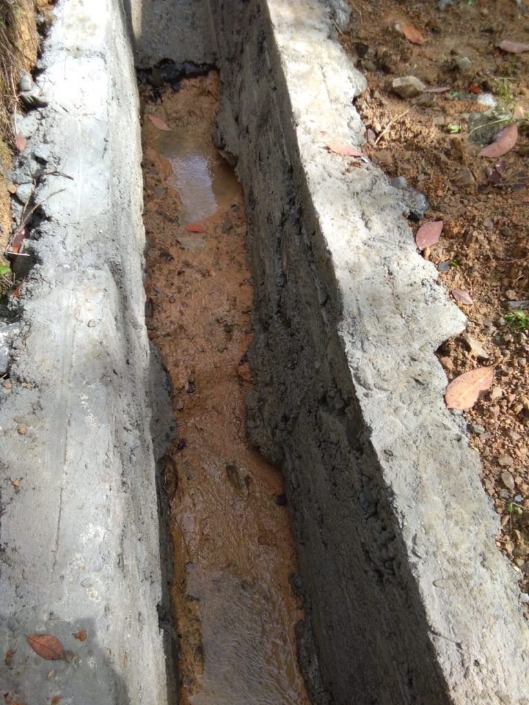 Hasil pantauan Pirnas.com Nias Selatan baru-baru ini saat ke lokasi proyek dimaksud di Desa Berua Siwalawa, dimana item pekerjaan pemasangan parit beton tidak memasang pondasi, namun hanya kurang lebih 5 cm ketebalan dasar tembok (gambar doc.), sehingga saat turun hujan bisa terjadi ambuk parit tersebut.