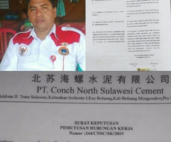 PIRNAS.COM | BOLMONG – Ormas Laki desak Disnakertrans Bolmong segera tindak lanjuti pemutusan kontrak sepihak yang di lakukan oleh PT.Conch Norti Sulawesi, yang berlokasi di jalan trans kelurahan Inobonto, Mirisnya UUD ketenaga kerjaan seakan-akan di abaikan oleh sala satu perusahan terbesar di wilaya Bolmong. Sehubungan dengan surat perjanjian kerja oleh perusahan yang di tanda tangani oleh kedua belah pihak  berdasarkan aturan dan UUD ketenaga kerjaan  maka dalam hal ini pihak perusahan tidak bisa semena-mena  untuk memutuskan suatu ikatan kerja  tanpa prosedur yang jelas berdasarkan hasil konfirmasi dari sala satu korban yang di Putus Hubungan Kerja (PHK) Tampa DI Berikan  Pesangon atas nama karyawan,