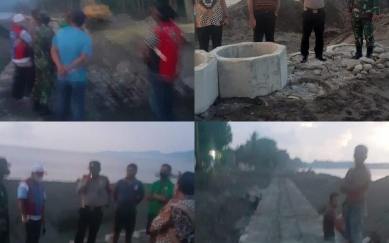 Pemerintah Kecamatan Bersama Unsur Tripika Kecamatan Pantau Proyek Pembuatan Penangkal Ombak di Desa Tiberias Poigar