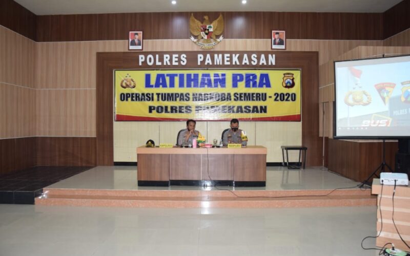PIRNAS.COM | PAMEKASAN – Kepolisian Resort Pamekasan, Madura, Jawa Timur, melaksankan giat Latihan pra operasi (Latpraops) Tumpas Narkoba Semeru 2020 bertempat di Gedung Bhayangkara Polres Pamekasan, Sabtu (22/8/2020) pagi.