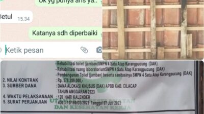 PIRNAS.COM | Cilacap – Revitalisasi SMP N 4 Karang Pucung yang mana disinyalir tidak sesuai dengan Spesifikasi, yang mana bukan hanya semata-mata di akibatkan dari Perusahaan yang tidak disiplin pada pekerjaan. Juga diakibatkan lalainya pengawasan pada pekerjaan.