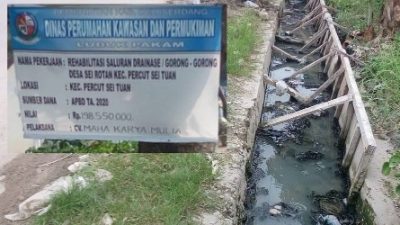 Selain itu juga terlihat kumuh dan menimbulkan bau yang tidak sedap. Dan Terlihat juga, proyek rehabilitasi saluran drainase (gorong-gorong) yang bersumber dari dana APBD Deli Serdang dan dikerjakan oleh CV. Maha Karya Mulia, dengan anggaran Rp. 198.550.000 ini terkesan terbengkalai.