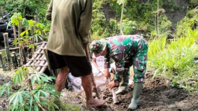 Penuhi Kebutuhan Air Petani, Babinsa Buat Saluran Irigasi