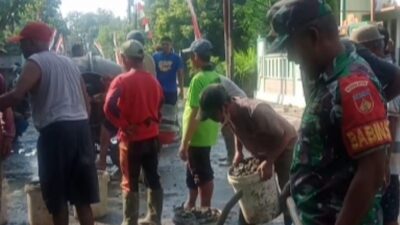 Perbaiki Infrastruktur Desa, Babinsa Bantu Cor jalan