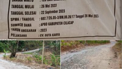 PIRNAS.COM | Cilacap – Perpanjangan waktu yang diberikan oleh Dinas PUPR Kabupaten Cilacap pada Pekerjaan Peningkatan jalan Cirelang-Pemulihan Kecamatan Karangpucung Kabupaten Cilacap, yang dikerjakan oleh CV.DK diduga secara terang-terangan melawan Peraturan Presiden Nomor 12 Tahun 2021 Perubahan atas Peraturan Presiden Nomor 16 Tahun 2018 tentang Pengadaan Barang/Jasa Pemerintah.