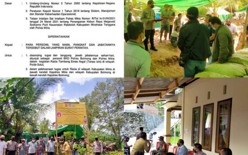 PIRNAS.COM | KOTAMOBAGU – Polres Kotamobagu hentikan pertambangan Illegal yang ada di Desa Lobong kecamatan Passi Barat.
