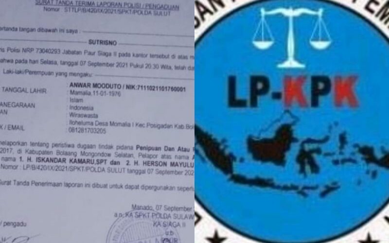 PIRNAS.COM | BOLMONG RAYA – Kasus yang dilaporkan oleh Anwar Moduto di Polda Sulut melibatkan Lembaga Pengawalan Kebijakan Pemerintah dan Keadilan (LP.KPK) yang langsung di koordinir Sekretaris Jenderal (Sekjen) Frreddy Tulagow SH, MH, sebagaimana dalam laporan polisi nomor B/420/IX/2021/ melaporkan atas nama Hi. Iskandar Kamaru. Hi. Herson Mayulu yang saat ini di ketahui terlapor Iskandar sudah menjabat sebagai Bupati Bolsel Herson menjabat sebagai Anggota DPR-RI dalam kasus dugaan penipuan dan penggelapan. tegas Sekjen LP.KPK.
