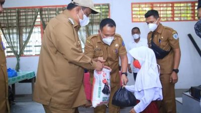 PIRNAS.COM | LABUHANBATU – Pj. Bupati Labuhanbatu Mulyadi Simatupang, S.Pi, M.Si serahkan secara simbolis 50 paket sembako kepada peserta didik kurang mampu di Aula SMP Negeri 1 Rantau Selatan Jl. K.H. Dewantara Kelurahan Sioldengan Rantau Selatan, Senin 12/4/2021.